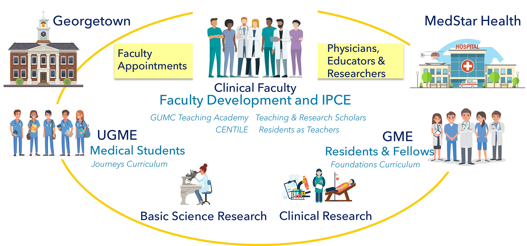 The integration of undergraduate medical education at Georgetown University and clinical training and research at MedStar Health GME enhances rigorous education and academic excellence and is a driving component of our mission to advance health.